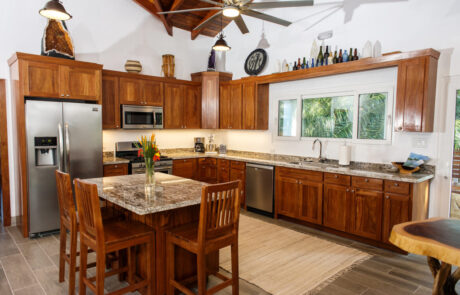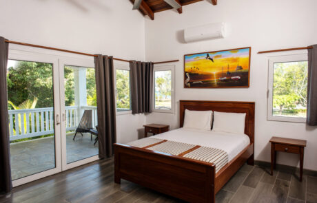 The Orchid house has four spacious bedrooms with two-and-one-half baths situated on a large lot nestled amongst the a rare strand of old growth trees near the Placencia Lagoon. The house is elevated 10 feet above ground level to catch the cool breezes and provide added privacy in the trees.