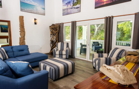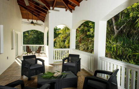 The private back porch has outdoor furniture perfect for overlooking the canals which leads to the beautiful Placencia Lagoon.